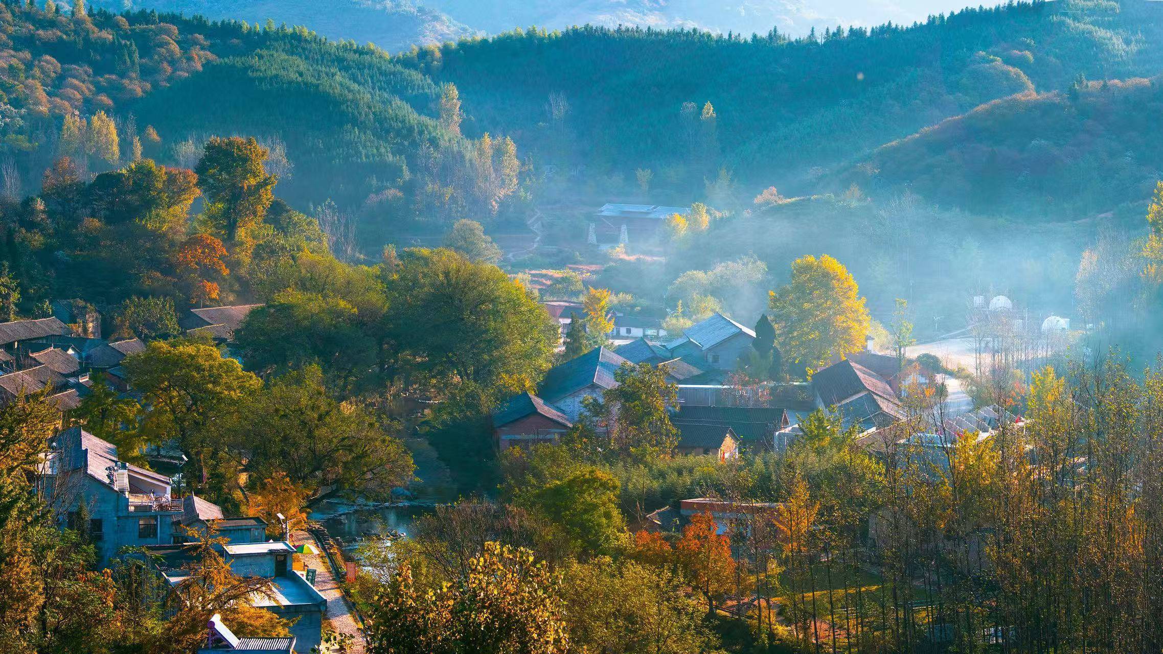 这是河南省信阳市新县西河村村景。受访者供图。“大落地窗、露台和庭院的座位,但愿让咱们的搭客慢下来,来享受咱们西河的宁静和好意思好。”“西河村咖”店长王振杰说。