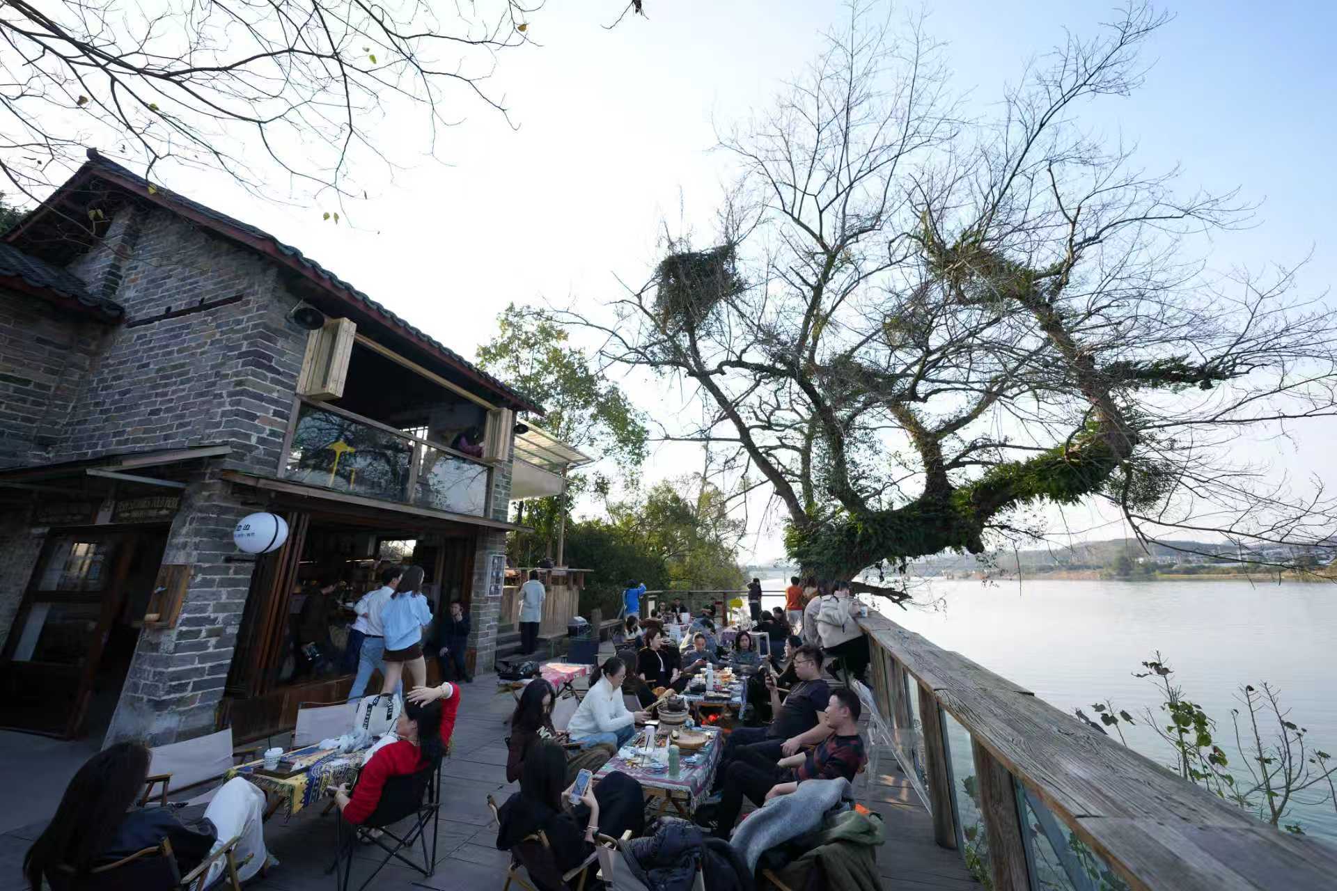 在湖南省郴州市苏仙区飞天山镇龙湾村,杨巧的窑烤面包房蛊惑了繁密搭客。新华社记者 丁春雨 摄和王振杰相似,河畔边窑烤面包房专揽东谈主杨巧也发现了乡村生存的魔力。