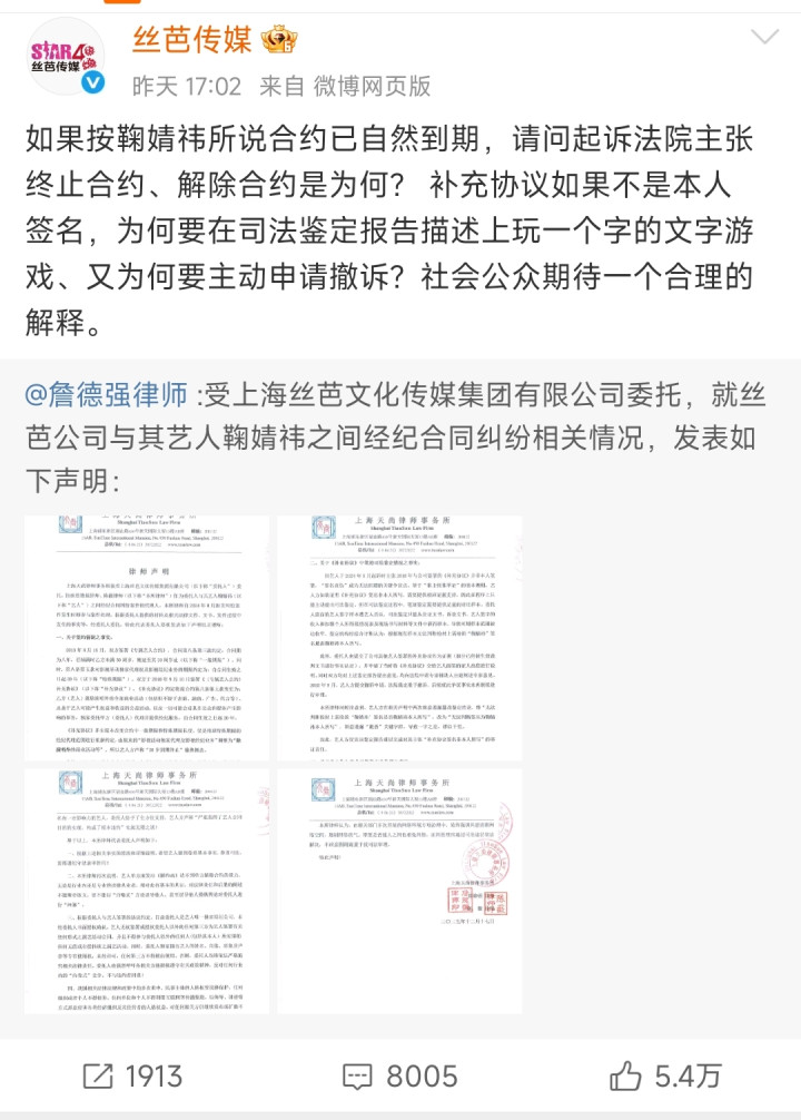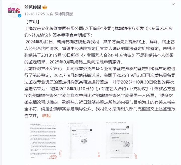 要说丝芭为怎么此决绝,以致不吝以死相拼,还获取到那份2018年的补充合同上。鞠婧祎方说那是伪造的签名,丝芭却晒出了法则浮滑证明,咬定即是她本东谈主签的。