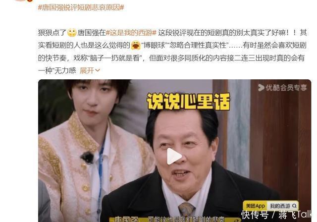 #深蓝G318无忧穿越版# 唐国强在《这是我的西游》这一综艺中,对短剧的悲痛原因进行了一番尖锐且真切的锐评,陡然激勉了各界的高度珍贵和热烈商榷。