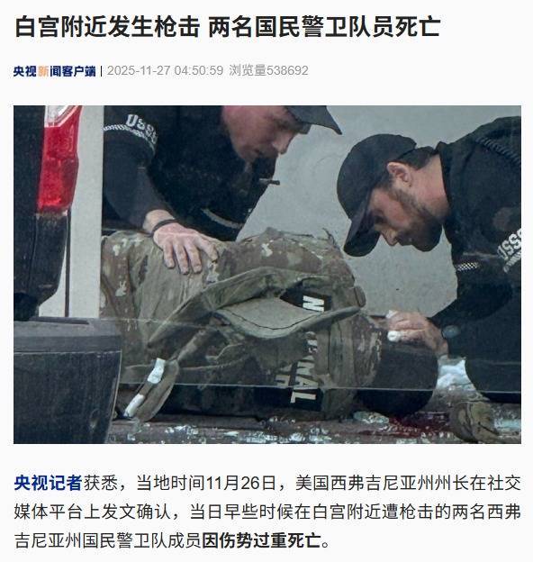 另据新华国外,好意思国两名国民警卫队成员26日在白宫隔邻遭到枪击,伤情严重。好意思国警方示意,嫌疑东谈主已被握获。