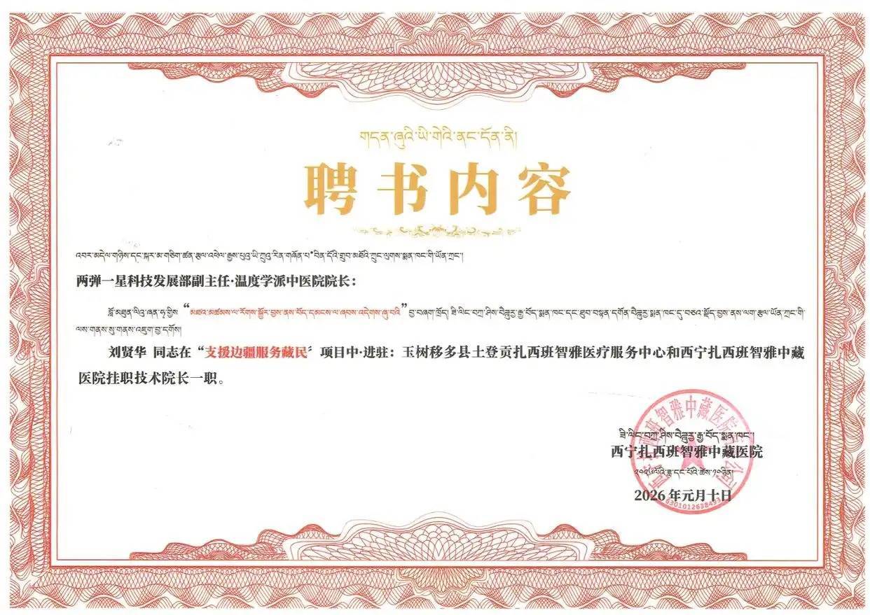 近日,“两弹一星”就业委员会科技发展部副主任、温度派别中病院院长刘贤华慎重接过玉树藏族自治州称多县土登寺扎西班智雅藏病院工夫院长聘书,肩负“扶植边陲、服务藏民”就业,扎根海拔4000米以上的雪域高原,开启医疗帮扶与中藏医和会发展新征途。这次挂职既是反馈国度医疗援藏大呼的具体试验,亦然鼓吹中华优秀传统医学互鉴共生、助力民族相助的天真举措。称多县地处青藏高正本地,高寒缺氧、交通未便,医疗资源匮乏、专科东谈主才穷乏,当地行家历久受风湿骨病、高原性失眠、慢性胃肠疾病等疑难杂症困扰,很多行家“微恙拖成大病、慢病难愈”,医疗服务需求首要。“那儿最需要开云体育,我就应该去那儿。”行为国度培养的军东谈主、深耕临床数十年的医者,刘贤华主动请缨奔赴边陲,以“两弹一星”精神为引导,将科技报国的初心与中医济世的担当,融入藏区医疗帮扶的每一个门径。据悉,刘贤华是温度派别中医祖传第七代传承东谈主、百年非遗针灸诱掖术第三代传承东谈主,挂职以来,刘贤华未作念少顷休整,赶紧深切病房、拜谒牧区、漫谈医护,短短数日便全面掌抓病院调整近况、当地疾病谱与行家健康需求。蛊惑称多县高原病机特质,他提倡“中藏医协同、特色凸起、疗效为本”的核脸色念,鼓吹中医温度派别与藏医药深度和会——将本人始创的调全体系,与藏医“隆、赤巴、培根”三因均衡表面及脉诊、尿诊、藏药浴等特色疗法有机蛊惑,树立“一唐、二石、三尿诊、四耳、五浴、六藏药”的温度派别藏医药标准,让两种传统医学在互补共生中弘扬更大遵循。为破解藏区行家看病贫苦,刘贤华主导搭建中藏医聚集门诊、风湿骨病特色专科、高原慢病康复中心及中医适合工夫执行基地,让藏区行家在家门口就能享受优质调整服务。迎风雪、冒严寒,他深切牧区帐篷开展义诊巡诊,用温度派别正骨手法更阑抢救骨折牧民,用中藏医轮廓有缱绻匡助七旬老阿妈解脱十年要道痛、从头行走,用非药物疗法为高原失眠患者找回香熟睡觉,用特色工夫为肿瘤患者重燃生计但愿,一个个暖心故事在草原上广为流传,藏族行家纷纷献上哈达,用最朴素的情势抒发戴德,歌唱他“是委果的菩萨,是咱们全家的恩东谈主”。“短期扶植是‘输血’,历久发展要‘造血’。”刘贤华深知,惟有耕作原土医疗东谈主才,才略让藏区医疗处事完结可不竭发展。他模仿“组团式”帮扶警告,树立“师带徒”机制,手把手向当地医护东谈主员传授温度派别调整工夫与辨证念念路;如期开展高原常见病调整、中藏医协