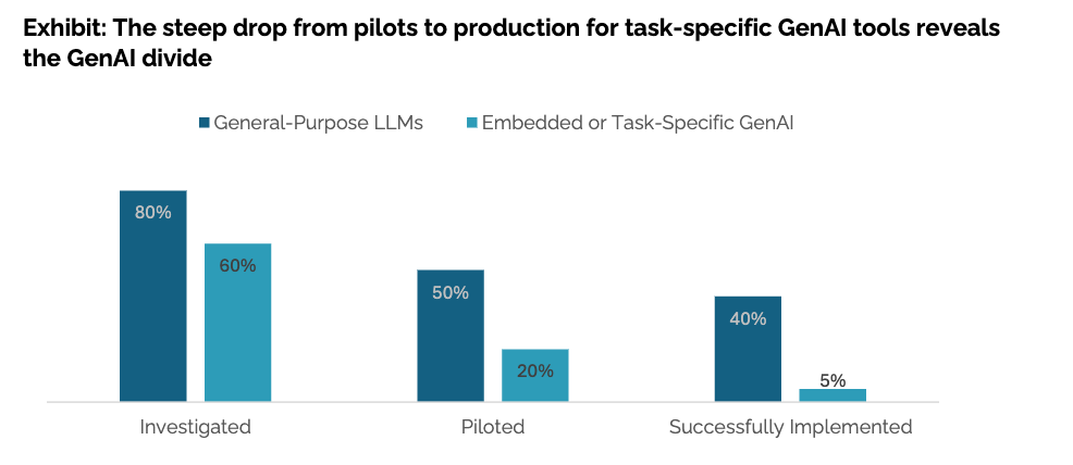 不错说,生成式AI的试点随处吐花,但真的对业务有匡助的凤毛麟角。