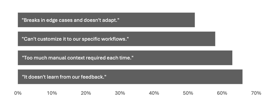 三. AI没记性、妥当性不行,学习才气差生成式AI的规模在部署率方面体现得最为显着,仅有5%的企业定制化AI器具大约插足坐褥使用。