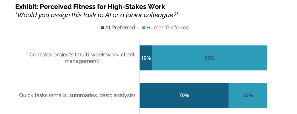 一位讼师默示:“AI很符合头脑风暴和初稿,但它不会保留客户偏好常识,也不会从之前的剪辑中学习。它会相结合样的造作,每次皆需要大皆的高下文输入。关于高风险责任,我需要一个能累积常识并跟着时间卓绝的系统。”