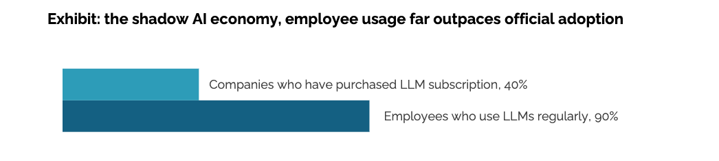 呈文用了“影子AI”(Shadow AI)来描述职工悄悄使用个东说念主版器具提高效力。